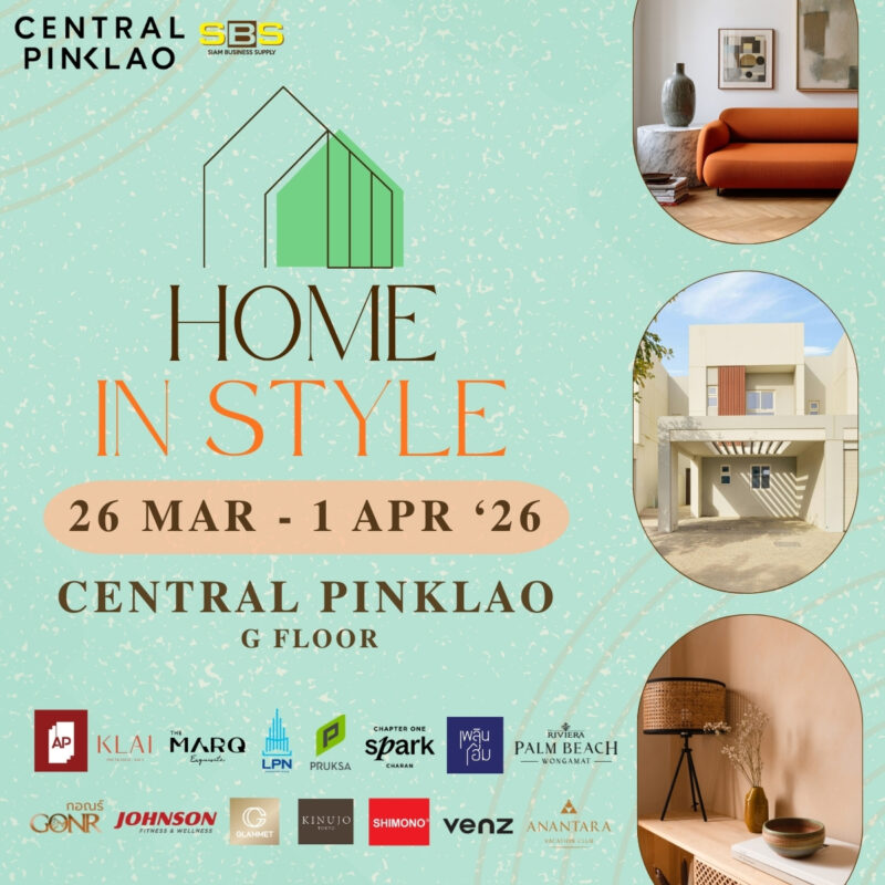 งานแสดงบ้านและที่อยู่อาศัย Home in Style อีเว้นท์สุดปังเพื่อคนรักบ้าน ย่านปิ่นเกล้า รวมอสังหาชั้นนำเพื่อการอยู่อาศัยและการลงทุนมาบริการครบวงจร พร้อมยกขบวนไอเทมน่าใช้ ของแต่งบ้านสุดชิค เพื่อความสวยงามของทุกมุมในบ้าน ห้ามพลาด hot deal มากมายในงาน มาเที่ยวชมเลือกสไตล์ที่ใช่ได้เลย  26 มี.ค. – 1 เม.ย. 69 ศูนย์การค้าเซ็นทรัล ปิ่นเกล้า ชั้น G